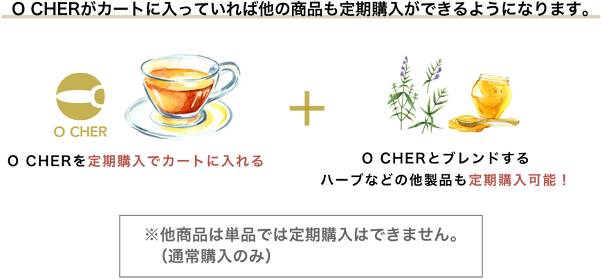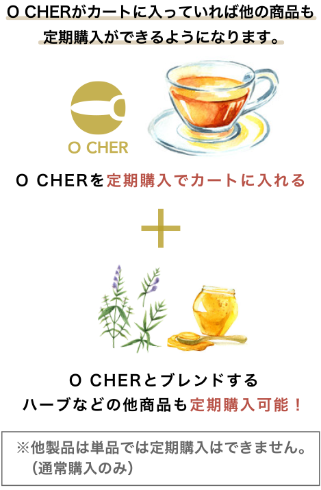 毎日の習慣に「O CHER」を加えるだけで体の中から健康が得られますので、定期コースのご利用をオススメします。