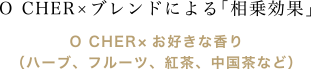 O CHERの豊富な健康成分にそれぞれの持つ香りや効能が加わり、日々の健康志向品として飽きのこないアレンジをどんどん提案していきます。